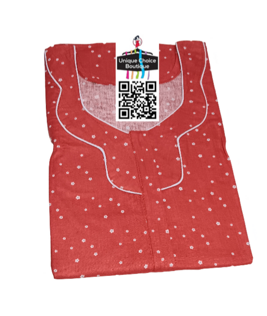 Cotton Feeding Nighty/ Maternity Dress with 3 Zips - Brown and Beige base color - Free Size