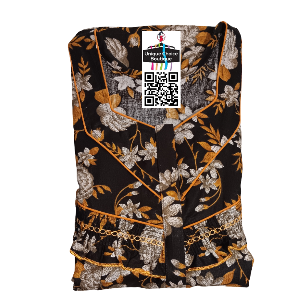 Cotton Feeding Nighty/ Maternity Dress with 3 Zips| Black Mustard Floral | Free Size