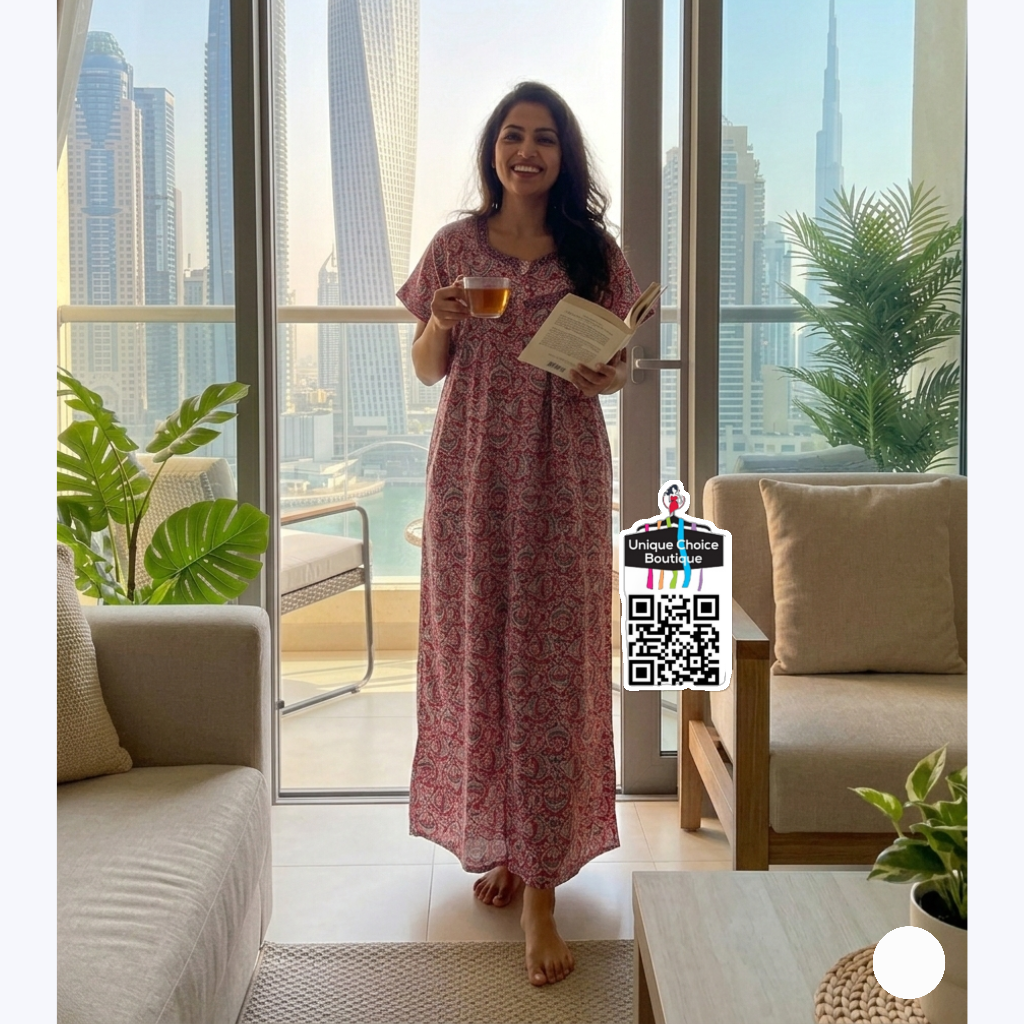 Upgrade your loungewear with our signature Pure Cotton Nighty. Designed for the modern woman who refuses to compromise on comfort or style. Whether you're winding down after a long day or enjoying a slow Sunday morning, this pure cotton nighty is your perfect companion.