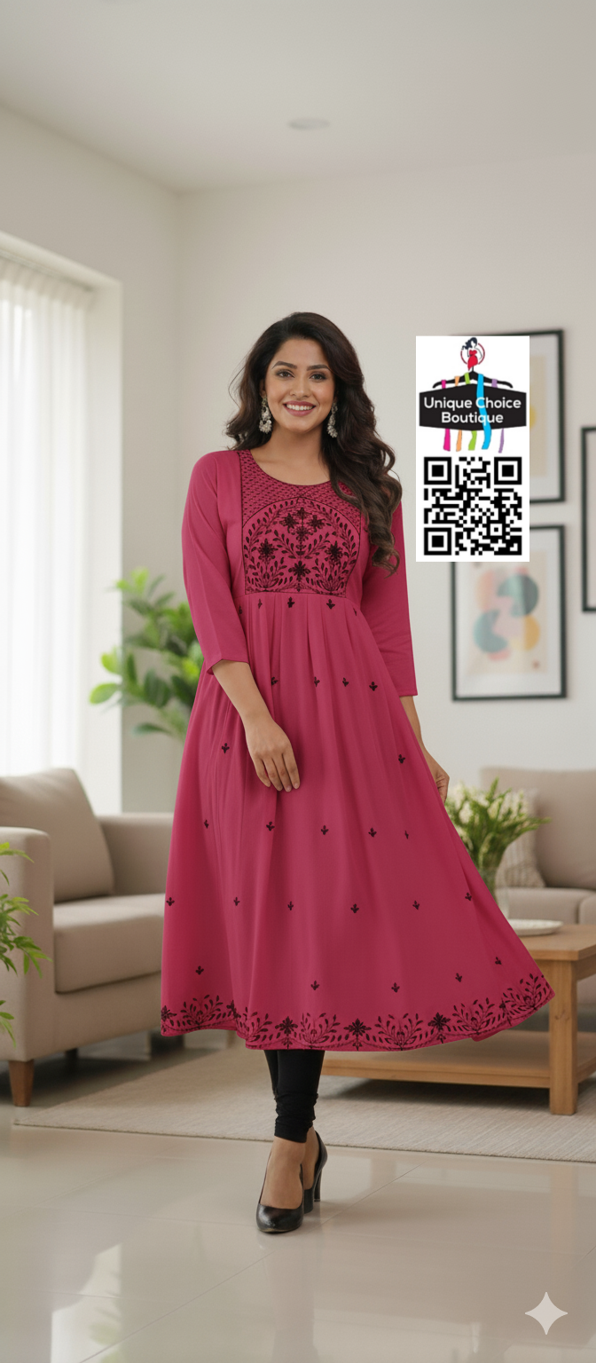 Rayon Alia Cut Anarkali Kurti with floral embroidery